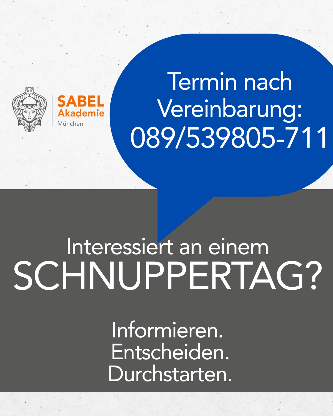 By the way möchte ich noch ein Lob an die Sabel-Schulen aussprechen. Der Kurs, sowie die Dozenten haben mir, trotz der Schwierigkeiten des Online-Unterrichts und der knappen Zeit sehr zugesagt und konnten mich gut auf die Prüfungen vorbereiten.